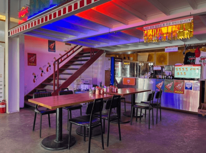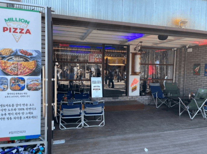 밀리언 피자는 황리단길 안쪽에 위치하고 있는데요, 실내에서도 피자를 드실수 있지만 1층에 테라스도 있고 루프탑도 있기 때문에 밤에 가시는 것을 추천합니다.