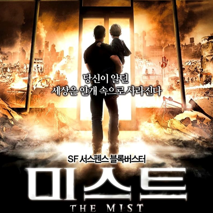 영화 미스트는 스티븐 킹의 소설 '미스트'를 원작으로 영화를 제작하였다. 국내 평점은 7.3점이며, 관객수는 52만 명을 동원하였다. 주연은 토마스 제인, 마샤 게이 하든이 역할을 맡았다. 토마스 제인은 미국 할리우드 배우이며, 대표작으로는 딥 블루 씨, 퍼니셔 등의 작품에 주연으로 출연하였다. 대표작으로는 조강지처 클럽, 플러버 등에 출연하였으며, 특히 2000년 폴락에서 여우 조연상을 수상하는 등의 이력이 있다. 먼저, 이 영화는 평점이 높지 않은 영화이다. 이유는 결말에 대해 극찬을 하는 사람과 허무하다는 사람의 호불호가 많이 나뉘기 때문이다. 이 영화의 반전에 대한 평가는 나는 가히 충격적이었다고 생각한다. 정말 짧은 순간의 장면으로 극의 모든 장면을 부정하는 듯한 강한 반전이었다.